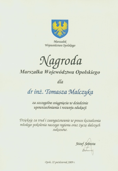 Województwa Opolskiego. W tym roku tę prestiżową nagrodę otrzymał m.in. dr inż.