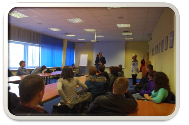 Po przyjeździe do firmy, na samym początku zaproszono nas do biura gdzie pracownik za pomocą prezentacji multimedialnej przedstawił nam wszelkie informacje związane z firmą i jej zakresem działalności. Na koniec mogliśmy zadawać pytania na temat firmy, na które pracownik udzielał nam odpowiedzi, a wszelkich dodatkowych informacji związanych z tymi pytaniami udzielał nam dr Bernat.