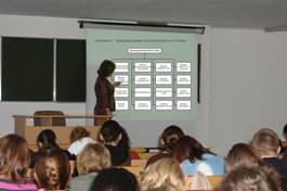mgr Mariola Chwalenia podczas wykładu na Nyskim Festiwalu Nauki, 2008