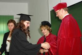 Prorektor dr inż. Tomasz  Malczyk i Pani prof. dr hab. inż. Zofia Wilimowska wręczają dyplomy, 2006