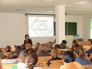 Członkowie Koła Finansowego BONUS podczas wykładu na Nyskim Festiwalu Nauki, 2008